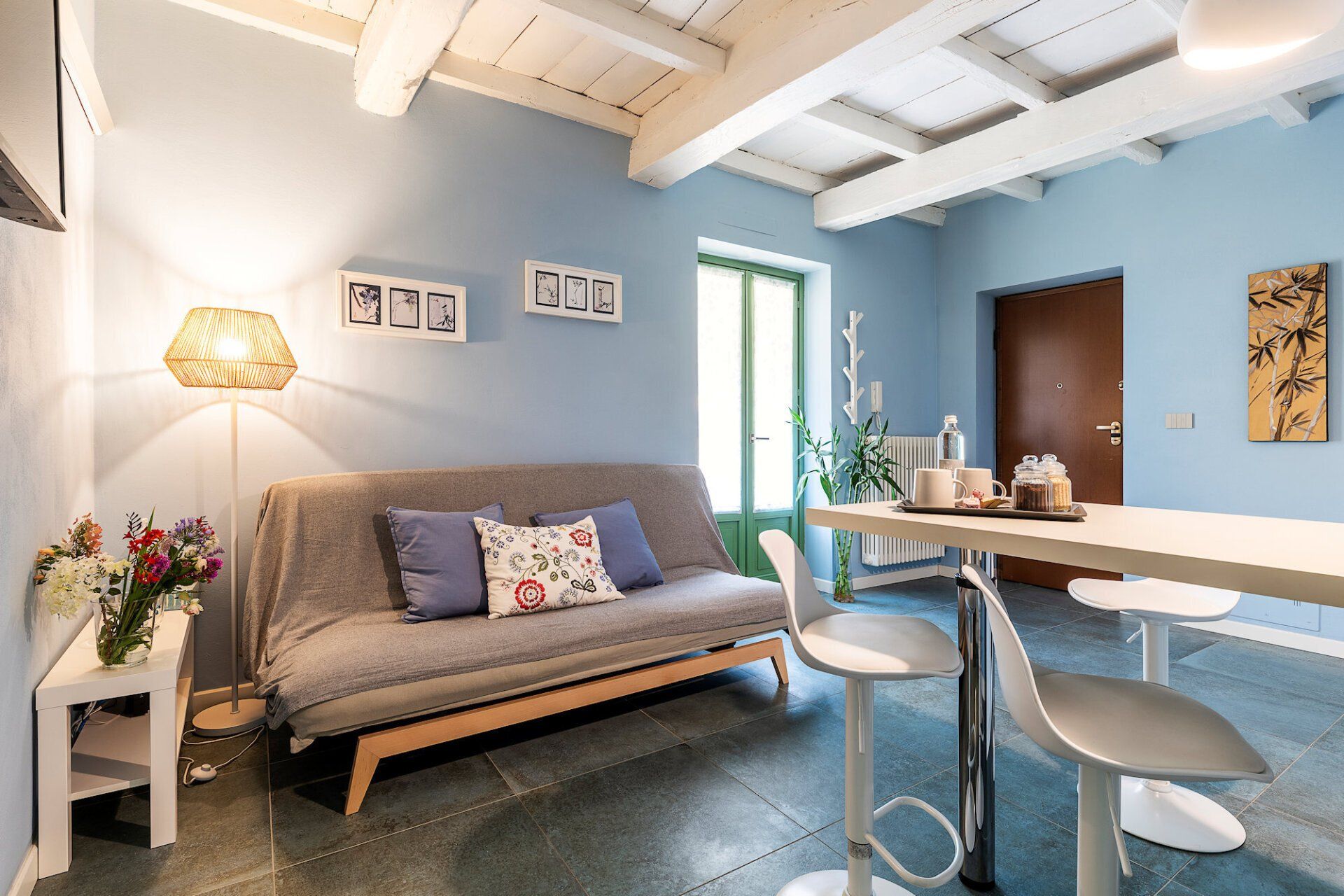 The apartment is decorated in a contemporary style. The kitchen is equipped with all the appliances and tools you will need to prepare breakfasts, lunches and dinners. In the living room there is a comfortable sofa that can be transformed into a bed for two people. The room is quiet, well insulated and has a small terrace overlooking the interior of a small courtyard. The bathroom, like everything else, is recently renovated and offers a very large designer shower.